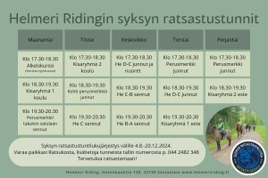 Meillä Helmeri Ridingissa on teitä varten turvalliset hevoset joiden kanssa on hyvä lähteä opettelemaan ratsastusta ja hevosten käsittelyä alkeista kisaryhmään asti. Osaavat opettajat auttavat askel askeleelta eteenpäin jokaisen omassa tahdissa.
